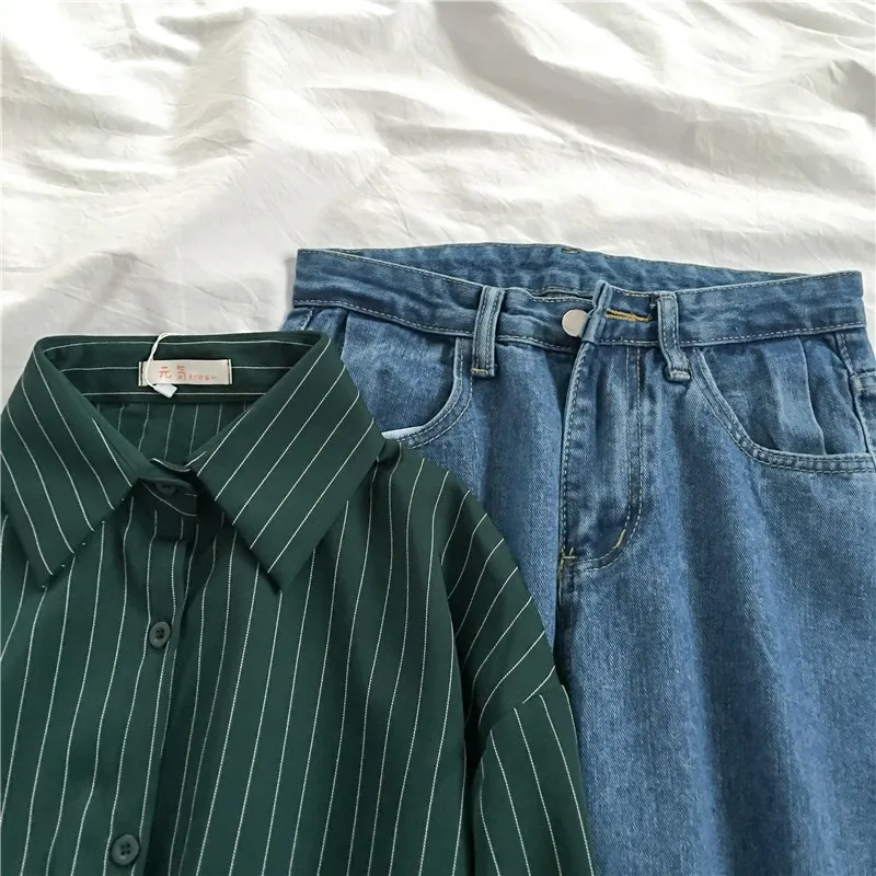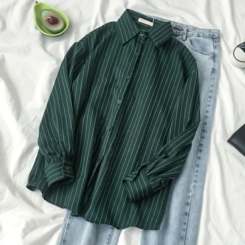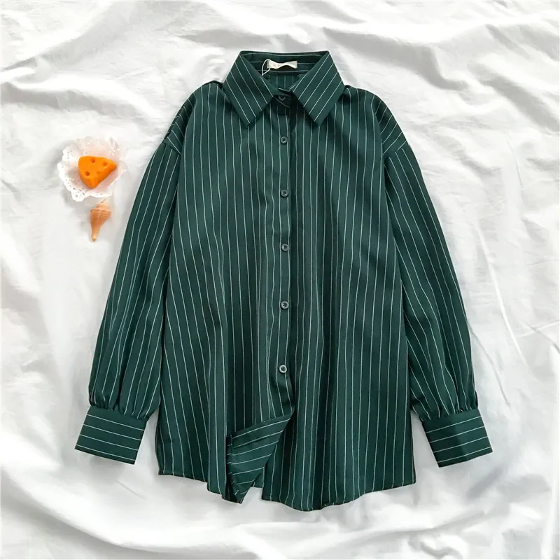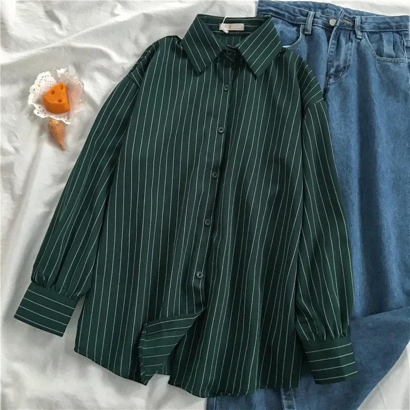 Женская блузка в полоску, с длинным рукавом и пуговицами