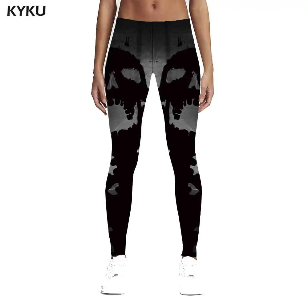 Женские эластичные леггинсы KYKU, черно-белые леггинсы с рисунком, ...