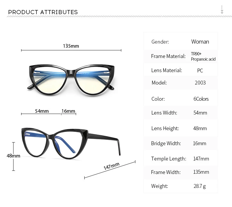 Очки кошачий глаз FENCHI, TR90, прозрачные очки для компьютера с за...
