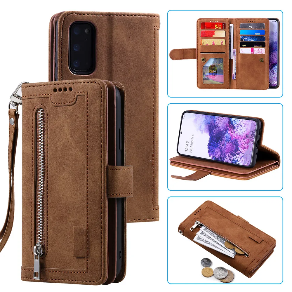 Чехол для Samsung Galaxy S21, S20 FE Ultra, S10, S9, S8 Plus, A13, A22, A12, A32, A50, A40, A30, A10, кожаный, с молнией