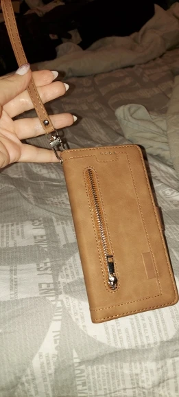 Прибыл вовремя. Хорошо упакованы. Чехол для телефона дарит приятные и мягкие ощущения при прикосновении. Это красиво и хорошо сделано так же, как на фотографиях. Телефон идеально подходит. Задняя часть также немного поднимается, так что она также защищает вашу камеру. Единственным недостатком является то, что с телефоном он довольно тяжелый (что можно понять, так как он вместительный, с дополнительным слоем также на молнии) И не просто использовать одной рукой или маленькими руками, как у меня. Но если вы не возражаете против этого, я абсолютно рекомендую его!