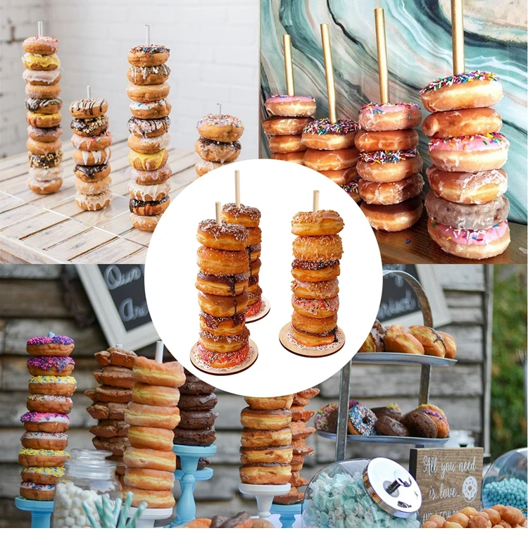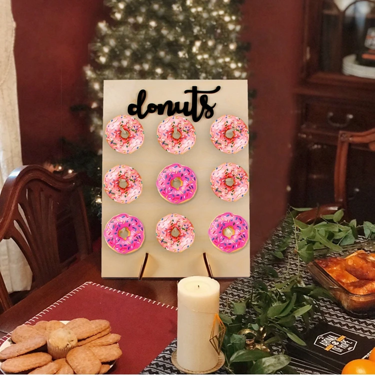 Деревянная пончик настенная подставка держатель пончик детский душ День рождения украшение деревянные принадлежности для свадебных мероприятий детская вечеринка пончики