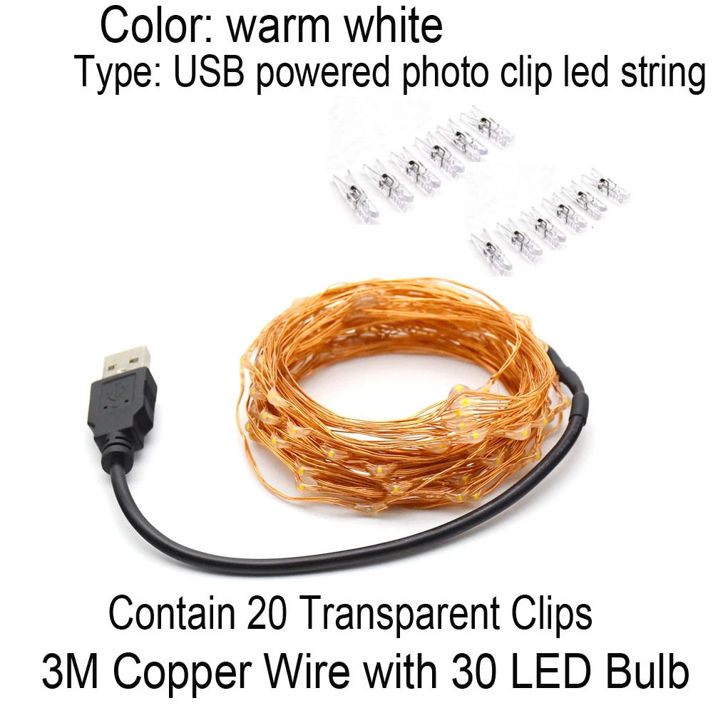 Тип 1: 20 шт. фото клип + 3 м 30 светодиодный s светодиодный шнур (теплый белый)