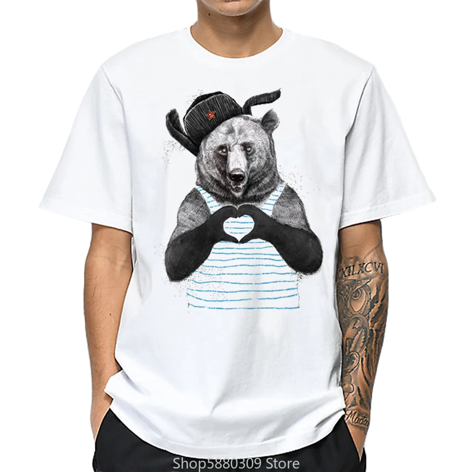2020 мужская Милая футболка с мультяшным сердцем и принтом медведя, футболки с принтом животных, забавная футболка с коротким рукавом в стиле Харадзюку, женская футболка