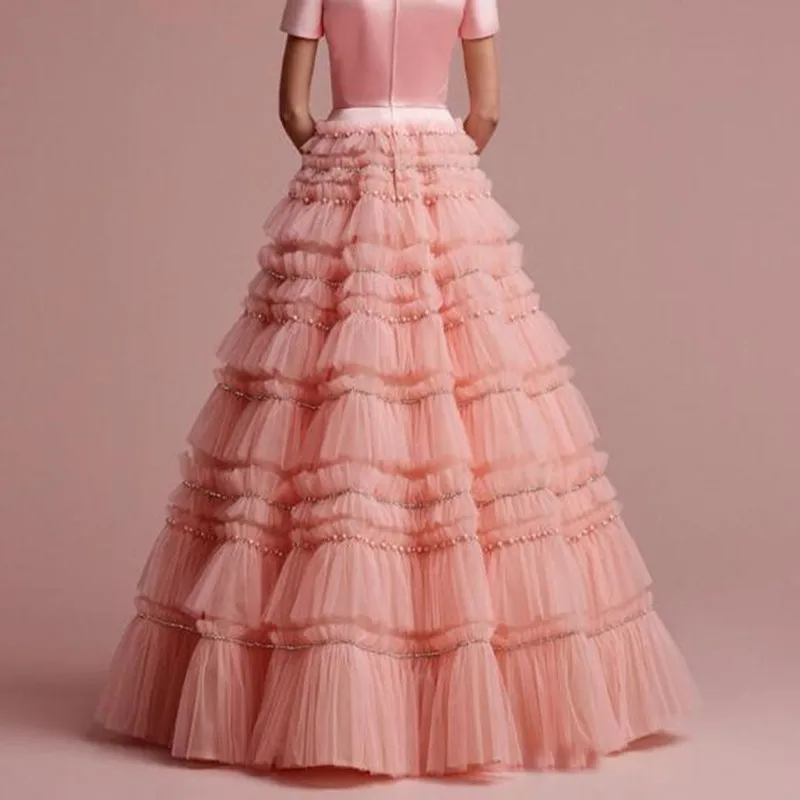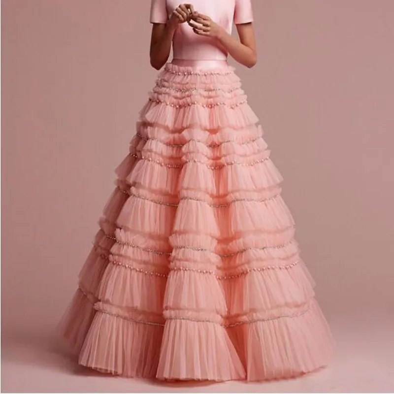 Женская длинная юбка с оборками, многоярусная юбка-макси с бисером, вечерние платья для выпускного вечера