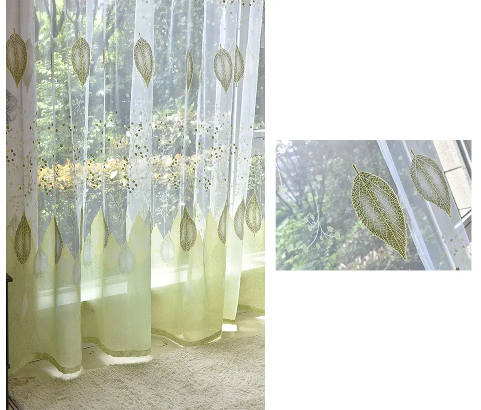 Пасторальная Тюлевая занавеска для гостиной, Зеленая прозрачная занавеска для спальни, занавеска из вуали, Шторы для кухни, занавески на заказ