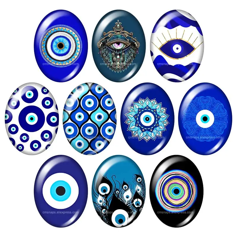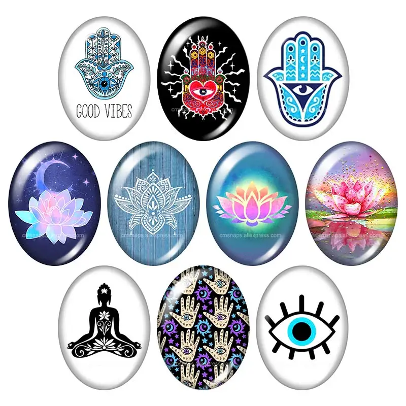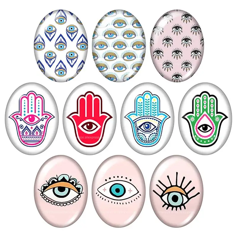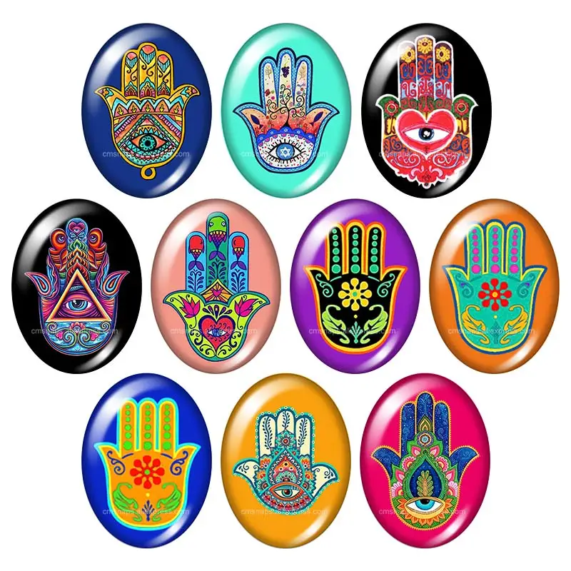Узоры для рук от сглаза, Овальные, 13x18 мм18x25 мм30x40 мм, смешанное фото, стекло, кабошон, демонстрация, ювелирные изделия с плоской задней частью