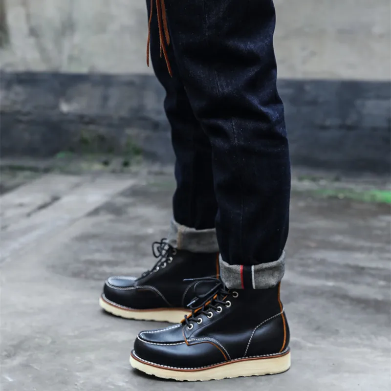 Винтажные мотоциклетные ботинки из коровьей кожи, ручной работы, с шипами, с круглым носком