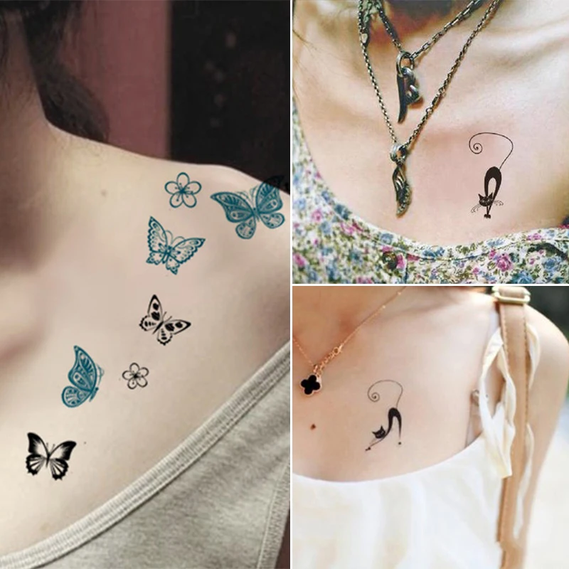 Временная наклейка для татуировки в виде бабочек, Листьев, кошек, цветов, съемная водостойкая бумага для тату