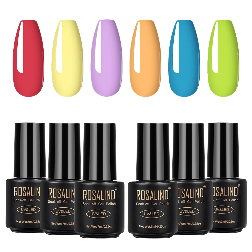 Набор гелей ROSALIND для маникюра, гибридные Лаки, неоновые, однотонные, художественный Гель-лак для ногтей дизайн, Базовое покрытие, стойкое покрытие