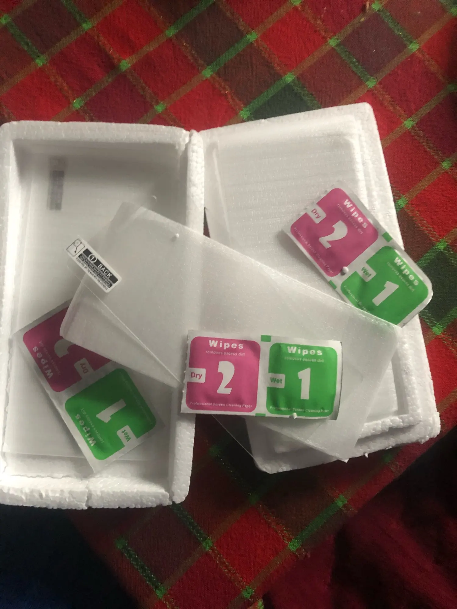 -Влажные салфетки сухие. -Один из кристаллов сломан -Не подходит для экрана телефона Huawei 9 plus Очень необычный продукт не подходит для показаний