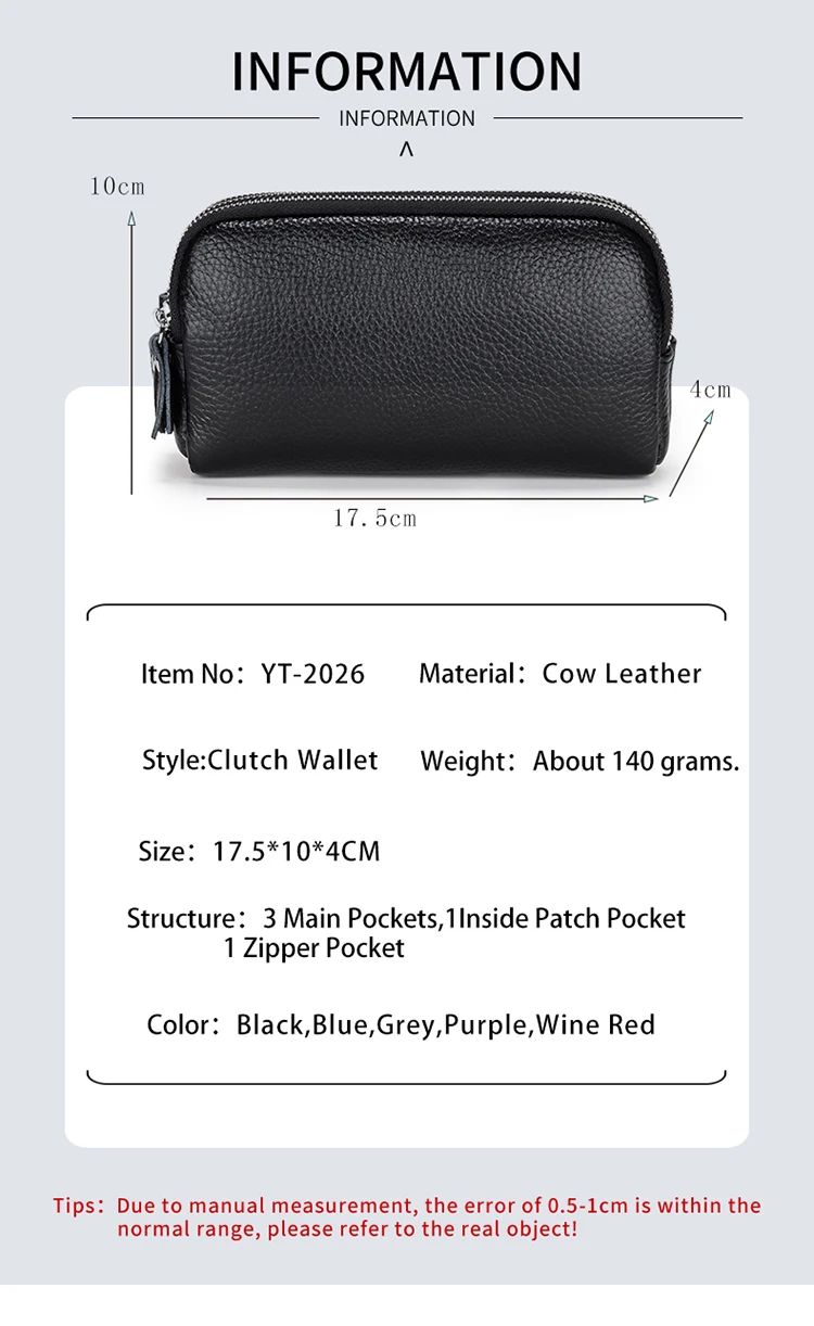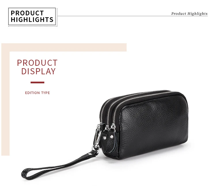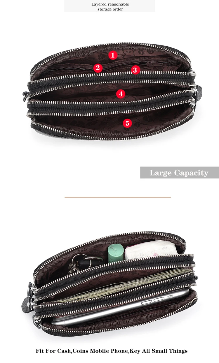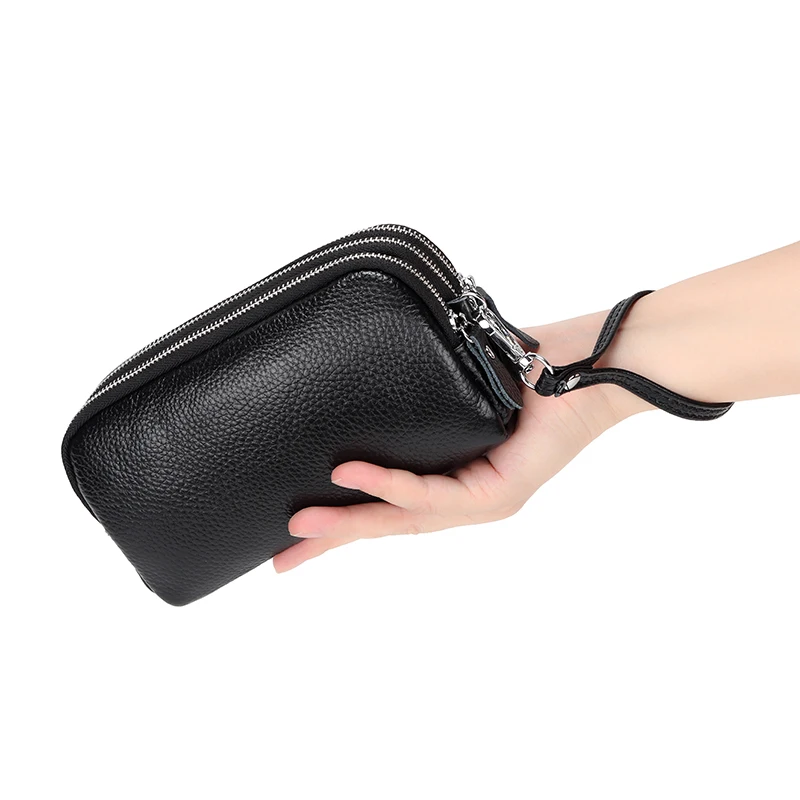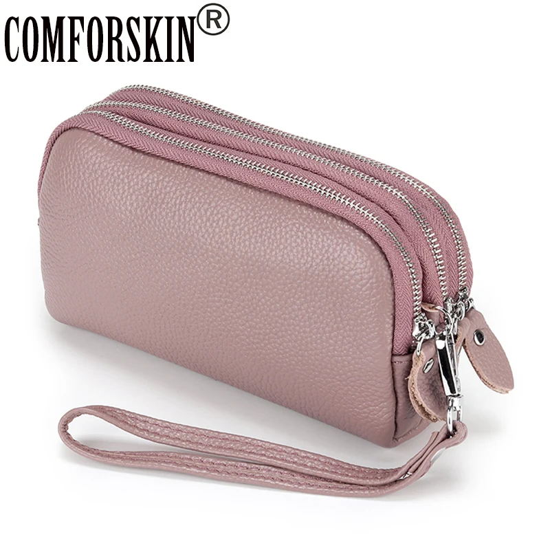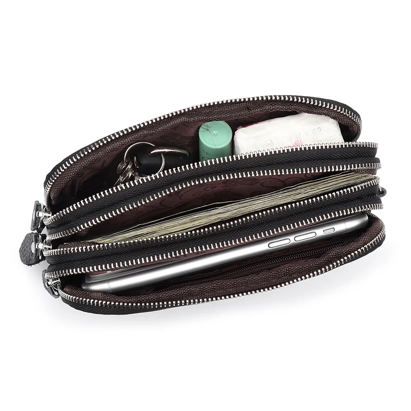 Удобный женский кожаный кошелек, Прямая поставка, кошельки из воловьей кожи с тремя молниями, Дамский кошелек большой вместимости