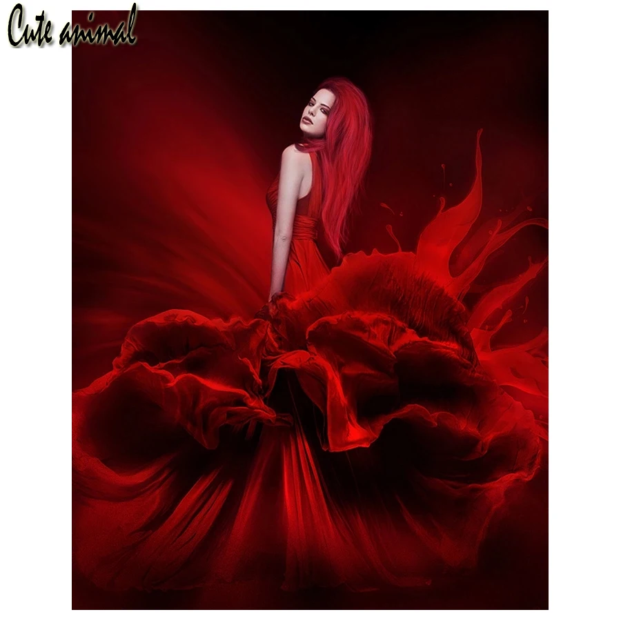 Полный квадратный Круглый diy 5d алмазная картина красное платье Женская Алмазная мозаика Вышивка крестом Алмазная Вышивка Узор домашнее искусство