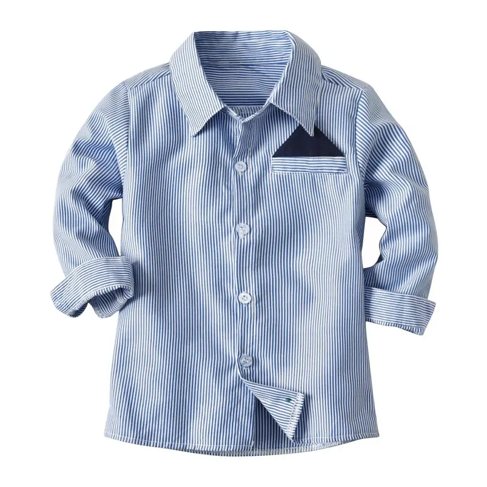 Детский костюм из 2 предметов, деловой костюм с длинным рукавом для мальчиков 2-8 лет, рубашка в полоску + штаны, 2020