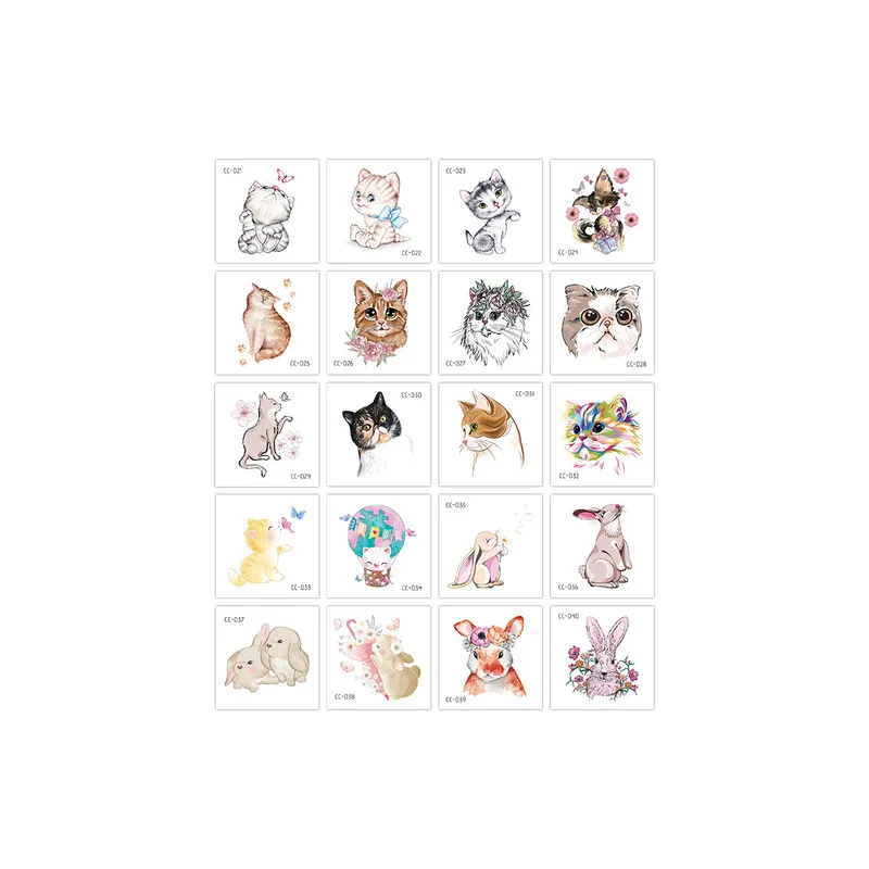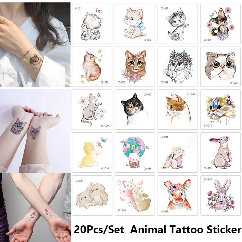 Временные татуировки, животные, кошка, наклейки, акварельные татуировки для женский боди-арт, для девочек, Переводные татуировки для рук, поддельные татуировки, 10-20 шт.