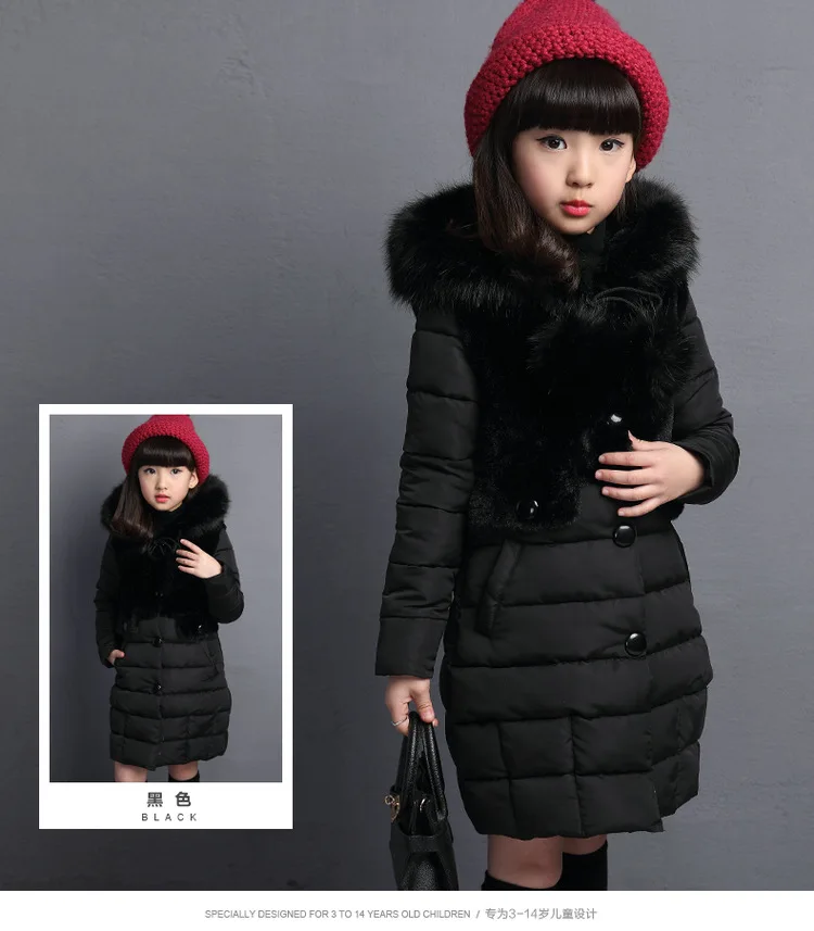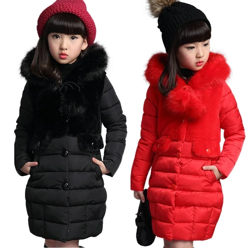 Теплое зимнее пальто для девочек модная длинная Детская куртка с капюшоном из искусственного меха для девочек, верхняя одежда для девочек От 4 до 12 лет подростков