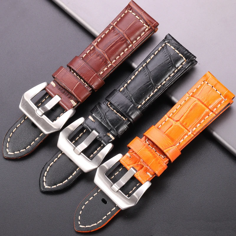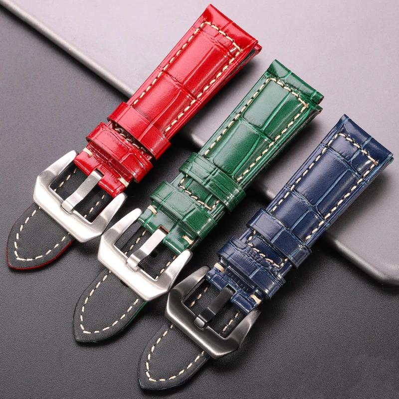 Ремешок для часов из натуральной кожи для мужчин и женщин, аксессуары для часов пам, черный коричневый красный синий зеленый оранжевый, 20 мм 22 мм 24 мм