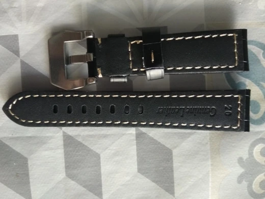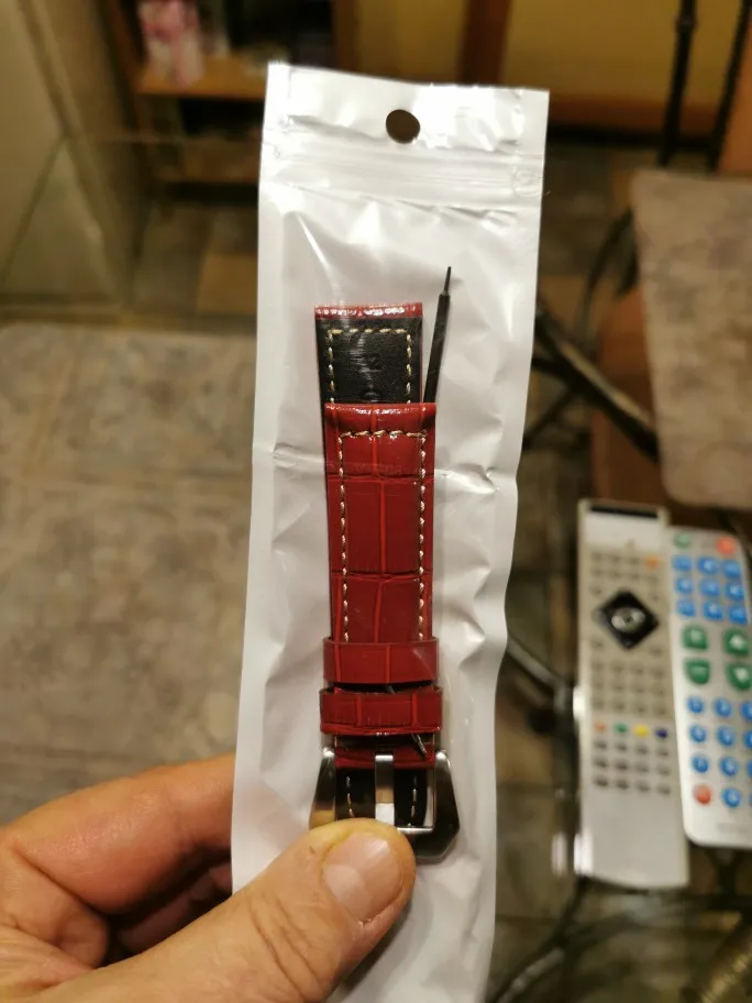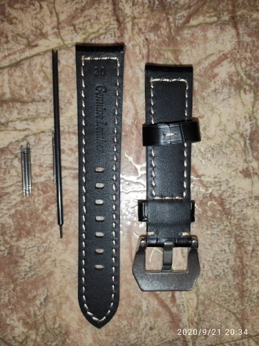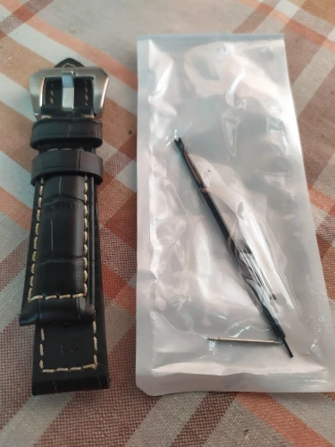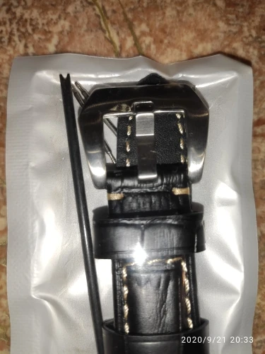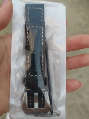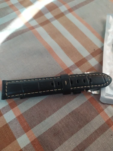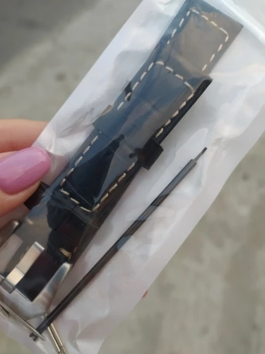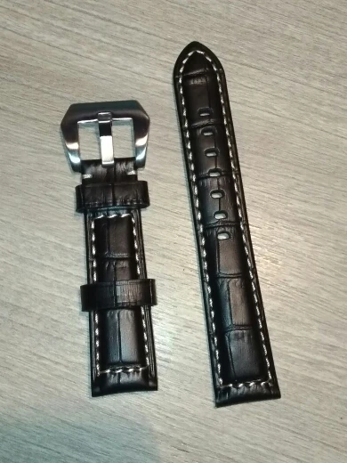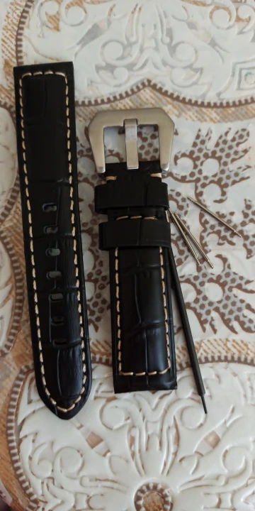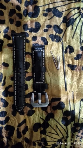 Супер качественный ремешок, аккуратно прошит. Очешуительно хорошо заделаны все швы. В комплекте инструмент для установки часовых шпилек, и целых четыре часовые шпильки. Все полностью рабочие. Рисунок на коже отпечатан четко. Ремешок прошит белой, нейлоновой ниткой. Видно что все швы сделаны вручную. Очень аккуратно и точно.