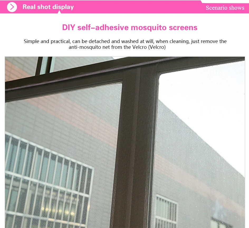 Очистка оконных рам.Возьмите самоклеящаяся невидимая лента (одна сторона для наклеек, одна сторона для невидимой поверхности Барб) наклейки сбоку приклеиваются к рамам.Нажмите на москитную сетку на поверхности невидимых колючек (сделано, это очень удобно!)