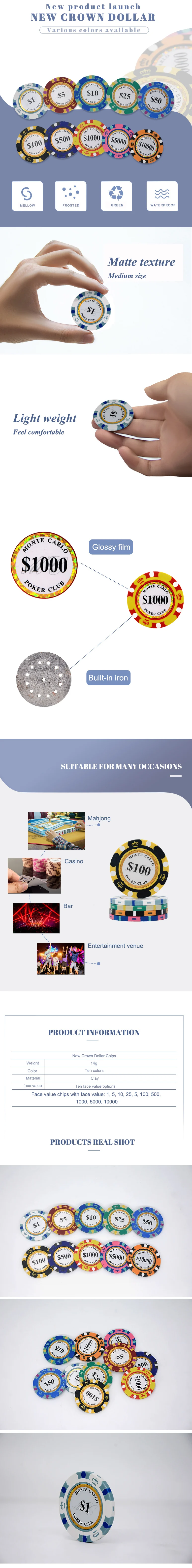 Покерные фишки JIESITE из глины, казино, монеты 40 мм, покерные фишки 14 г, набор развлекательных фишек Техасского холдема, долларовые монеты 10 шт.упак.