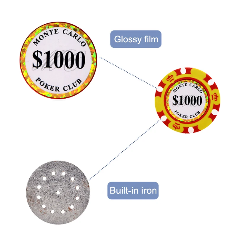 Покерные фишки, 14 г, наборы, покерные монеты для казино, 40 мм, мо...
