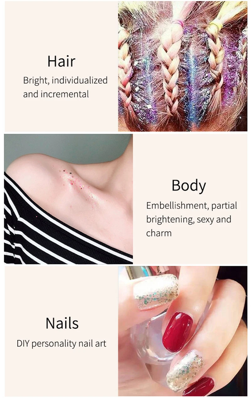 Блестки очень красиво переливаются. , хорошо держаться на теле за счёт геля.