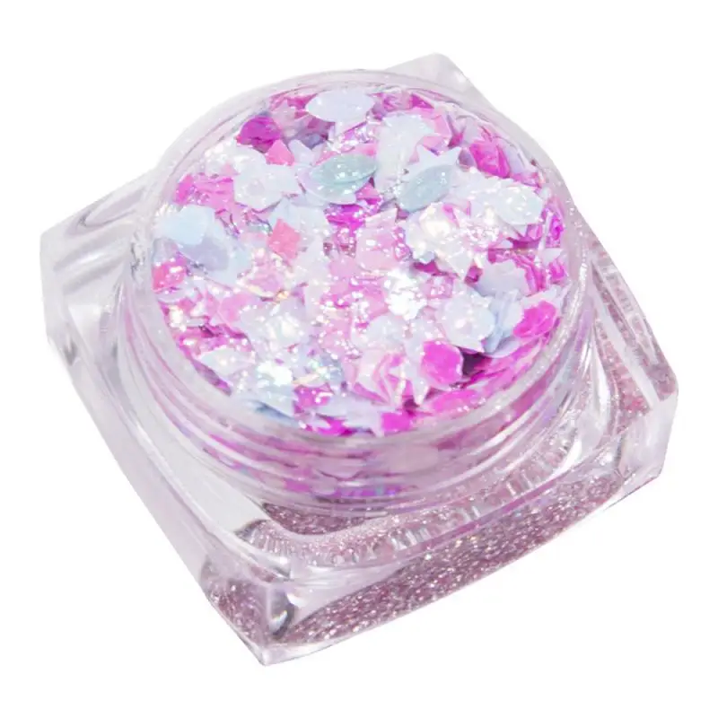 Цвет и блеск лазерных блесток зависят от угла обзора.