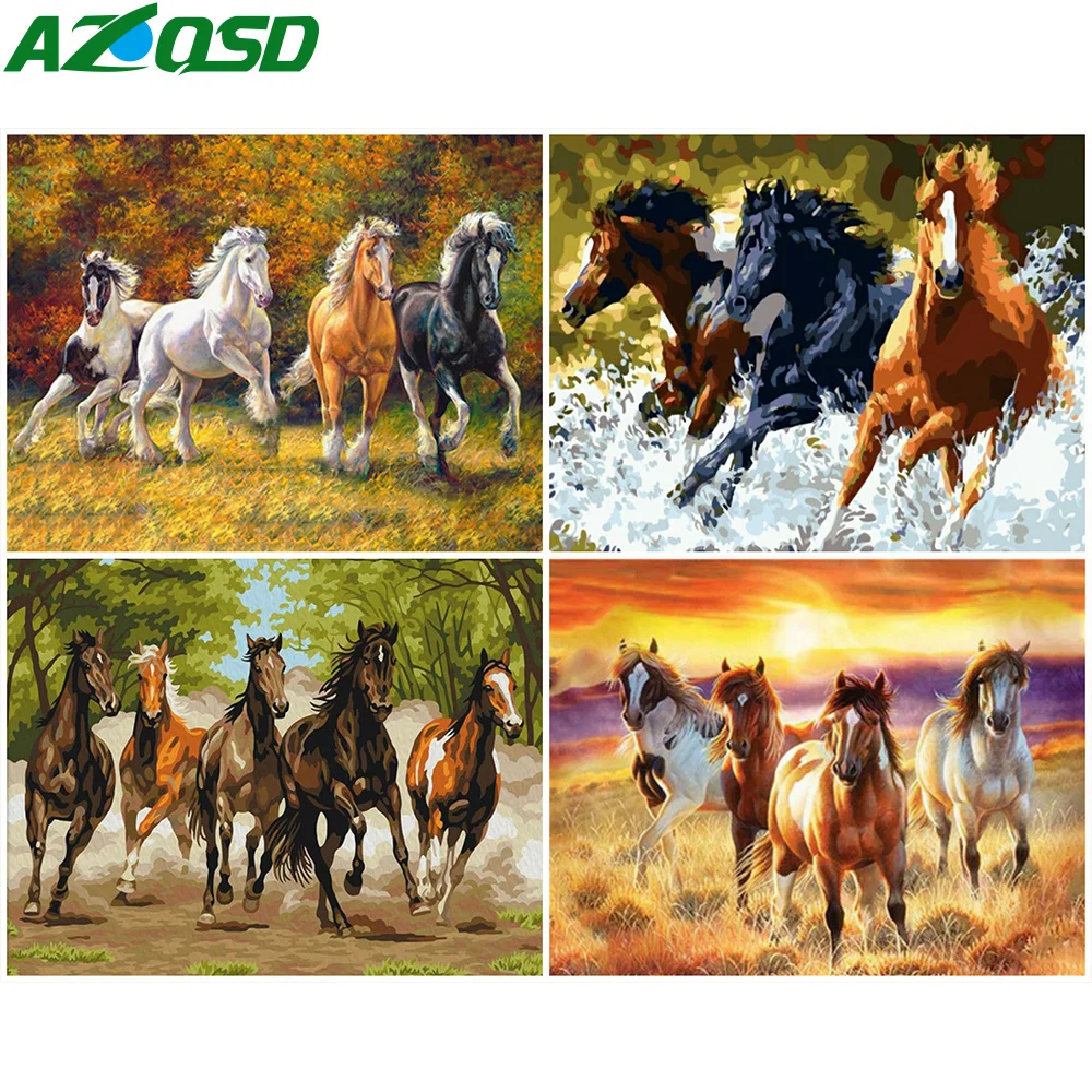 Масляная краска AZQSD для раскрашивания по номерам лошадь, сделай с...