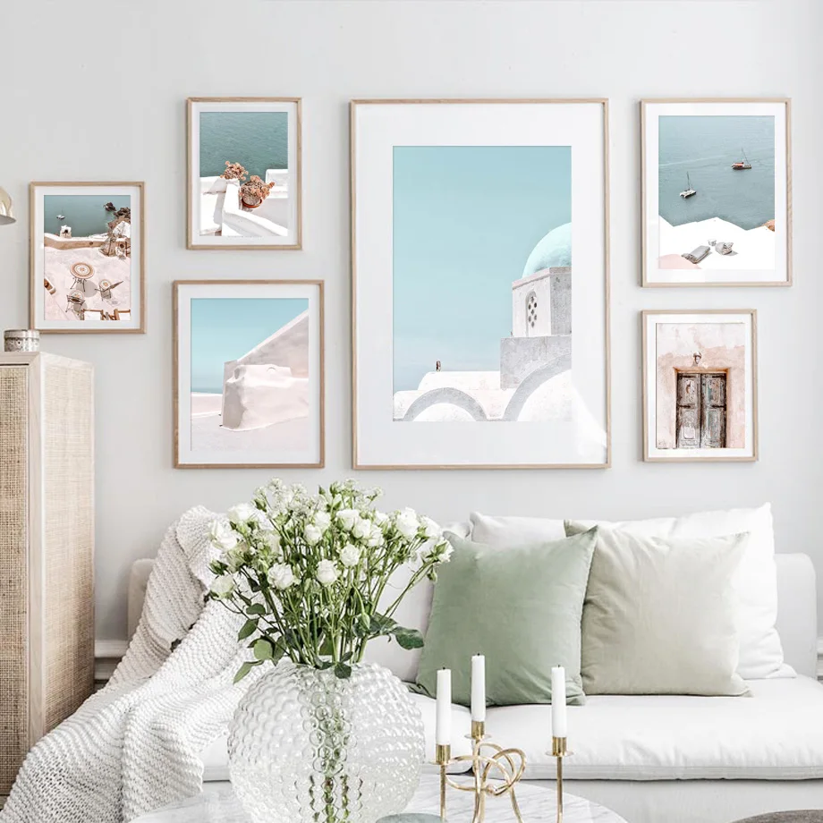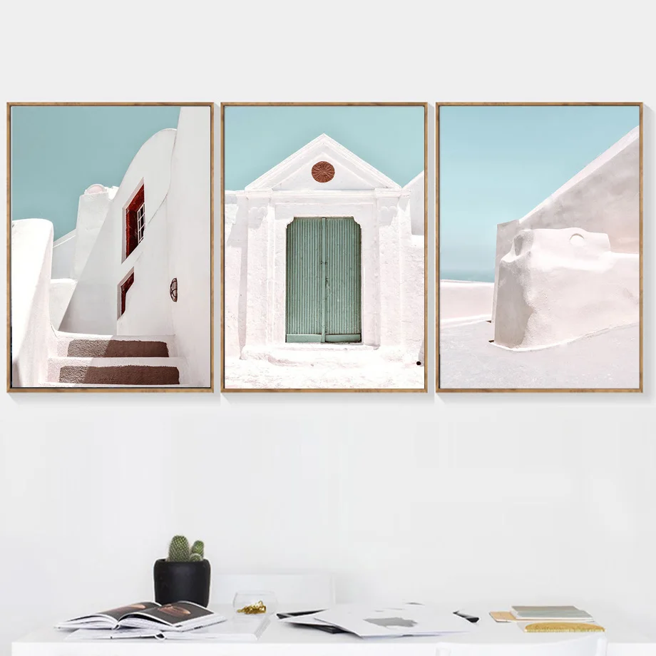 Современная архитектура в Санторини, пляжный дом, настенная живопись на холсте, скандинавские плакаты и принты, настенные картины для декора гостиной
