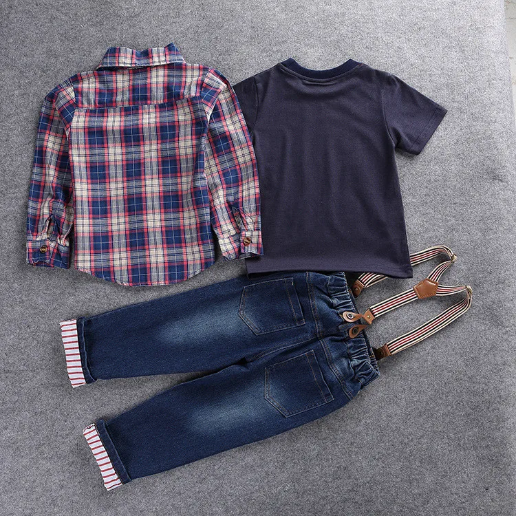 Осенняя детская одежда для мальчиков Одежда для маленьких мальчиков рубашка в клетку джинсовый костюм со штанами детская одежда комплект джентльмена для детей от 2 до 7 лет