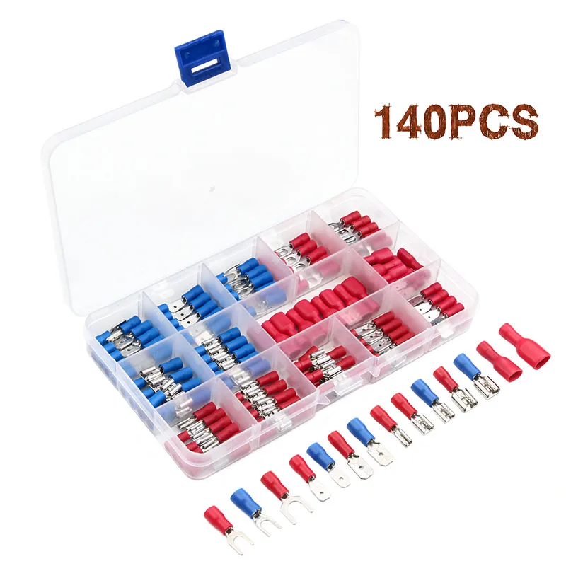 140/200 шт. полный Изолированная вилка u-тип набор клемм красные, синие ходовых электрических изолированных кабельных наконечников: кольцевые Терминатор с разъемами «Мама» и «комплект