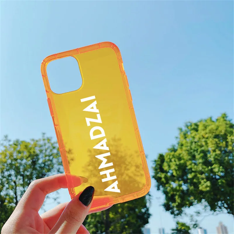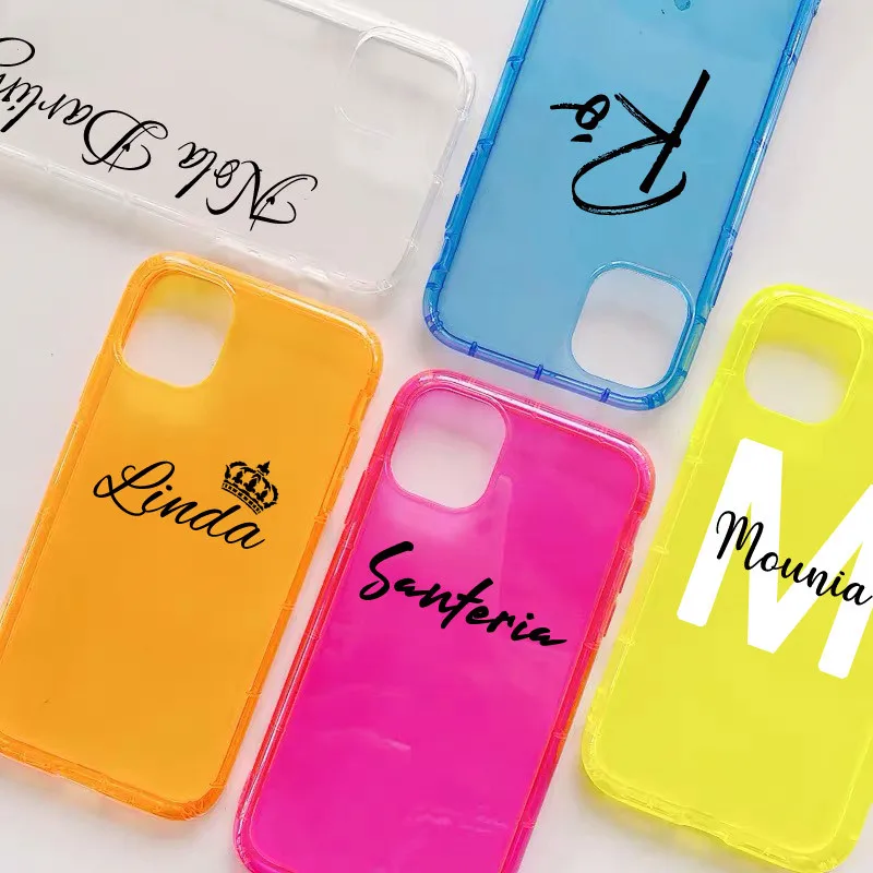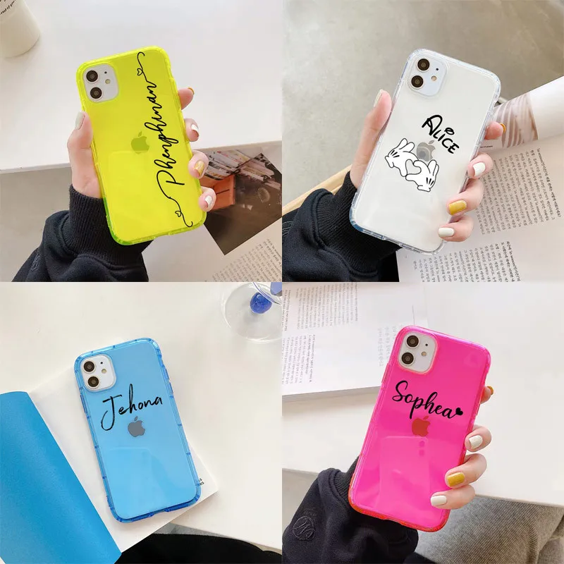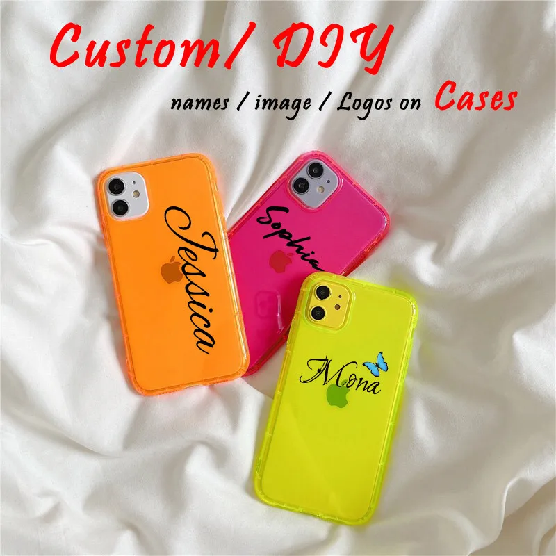 Чехол для iPhone 12, 11 pro, XS max, XR, X, 7, 8 Plus, прозрачный, из ТПУ, с неоновым флуоресцентным изображением логотипа, с именем на заказ
