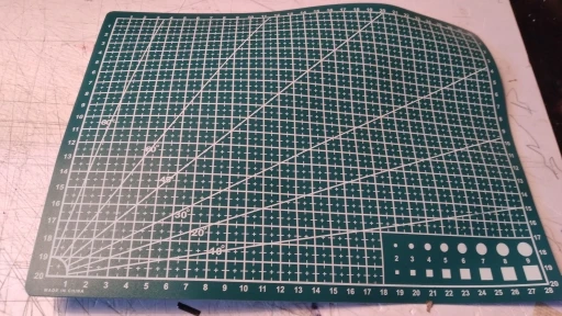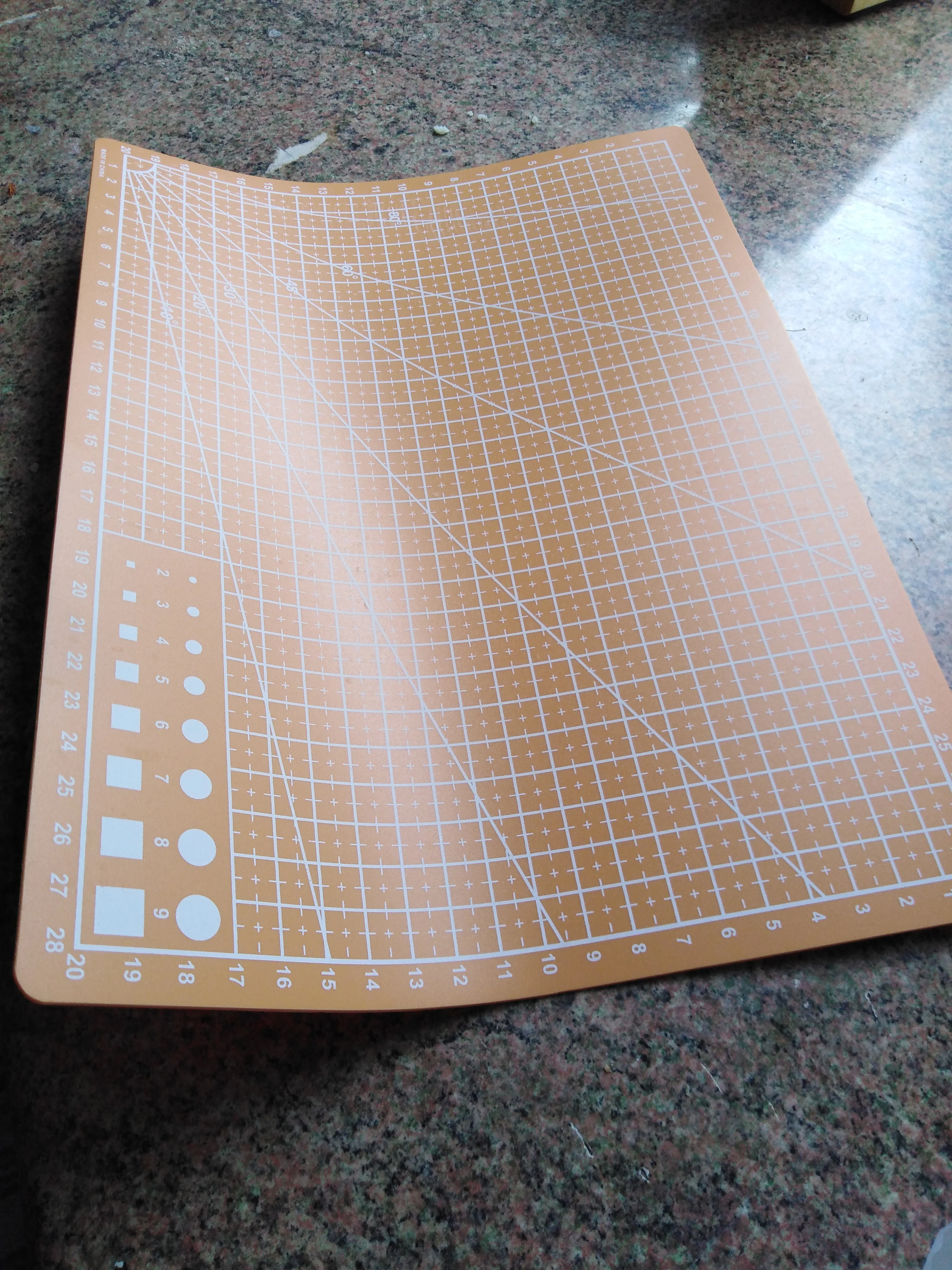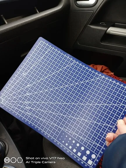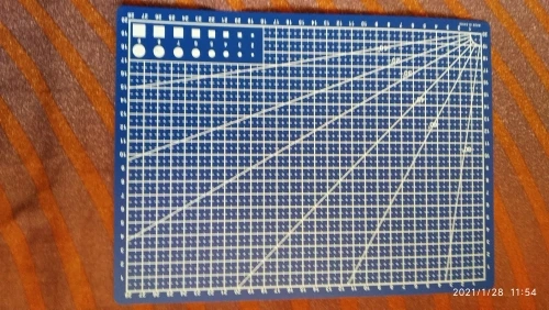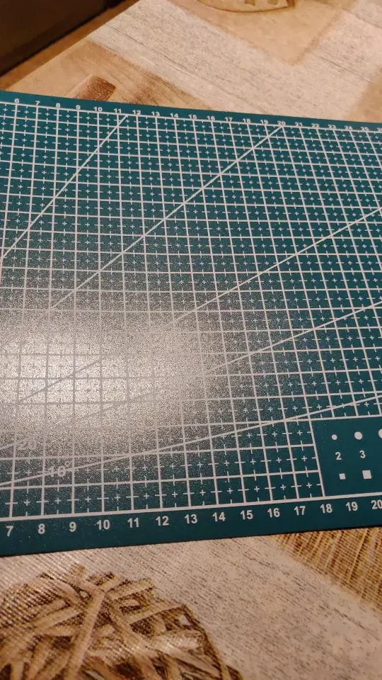 Листок пластика с разметкой. Сильно ножом лучше не давить, след остаётся. Для мелкой и тонкой работы пойдет.