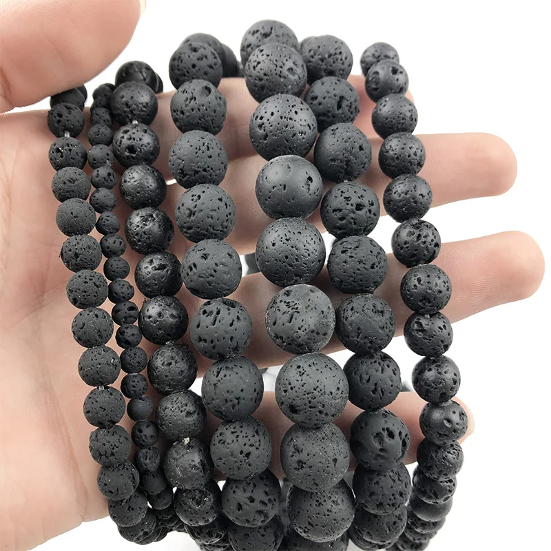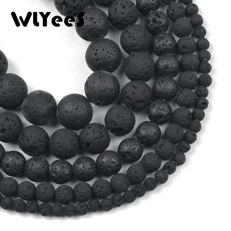 WLYeeS бусины из натурального камня черные бусины из лавового камня гематит Круглые бусины для самостоятельного изготовления ювелирных изделий браслет Шпильки для ушей 4 6 8 10 12 мм