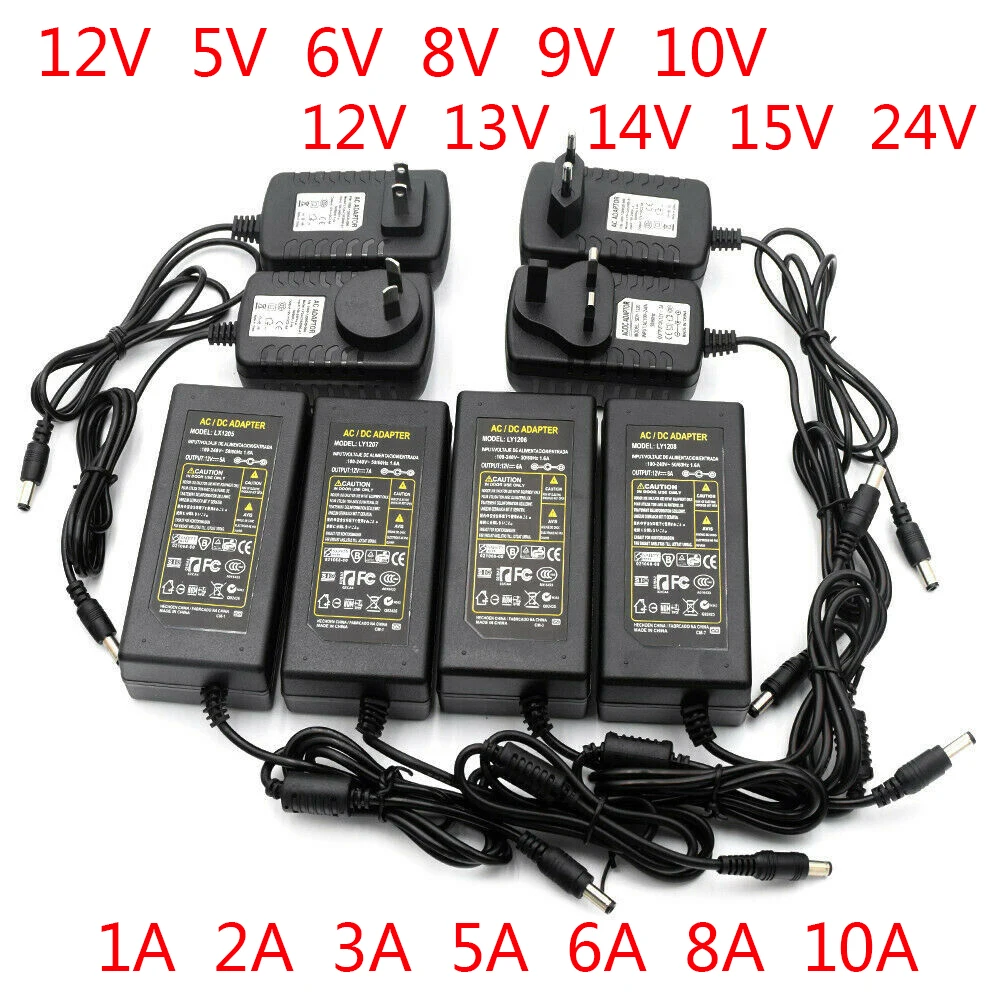 Адаптер питания, для светодиодный одного драйвера, 12 В, 5 В, 6 в, 8 в, 9 В, 10 в, 12 В, 13 в, 15 В, 24 В постоянного тока, 1 А, 2 А, 3 А, 5 А, 6 А, 8 А, трансформатор 220 В в 12 В