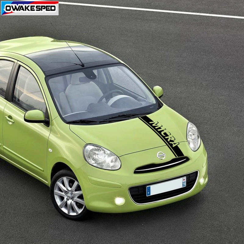 Наклейка на капот автомобиля для Nissan-Micra, гоночные спортивные полосы, декоративная наклейка на крышку двигателя s, внешние аксессуары из углеродного волокна