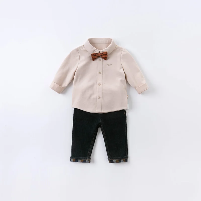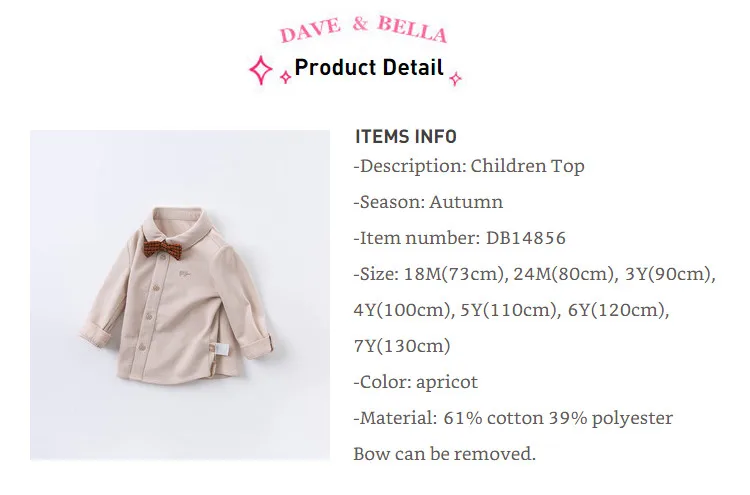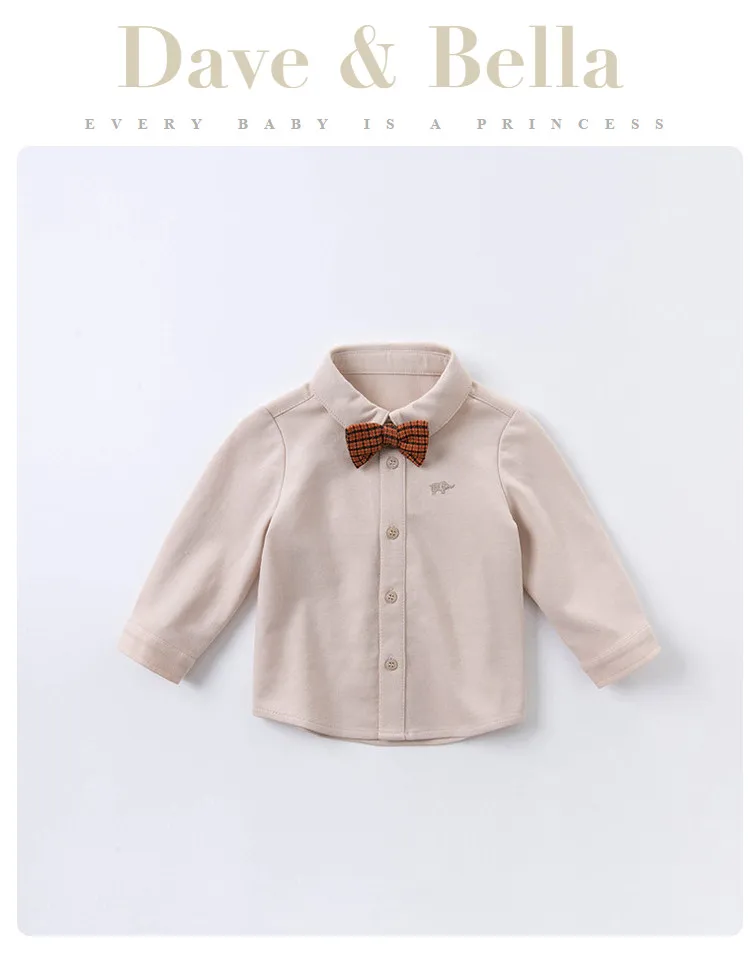 Dave bellaDB14856; Осенняя Однотонная рубашка со съемным бантом для маленьких мальчиков; Топы для младенцев; Детская одежда высокого качества