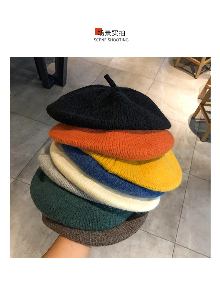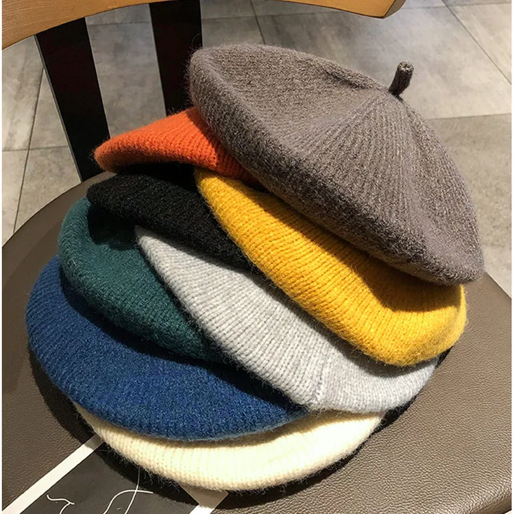 Женские береты на весну и зиму, Модная стильная шапка, женские шерстяные вязаные береты, одноцветные шапки, женские шапки, теплые шапочки для прогулок