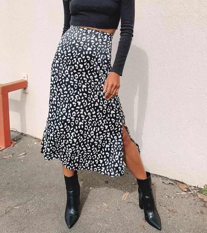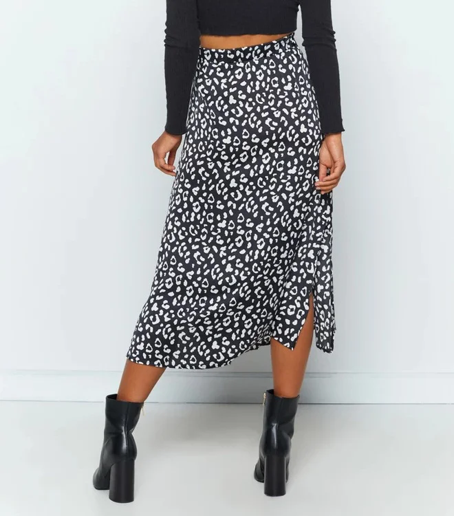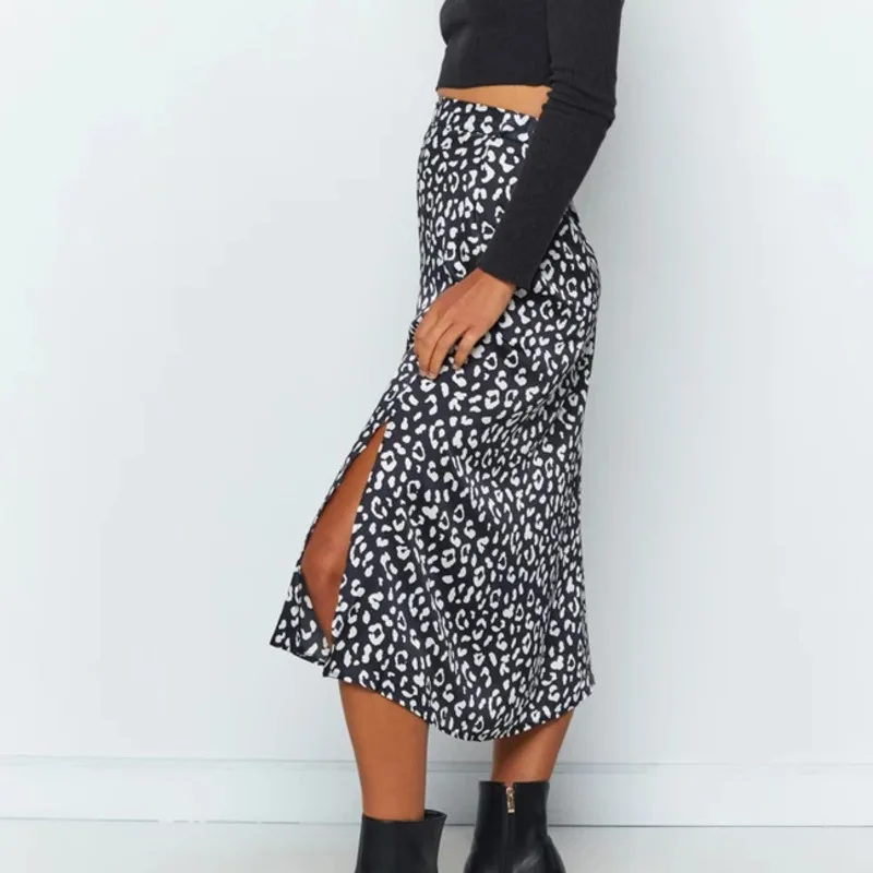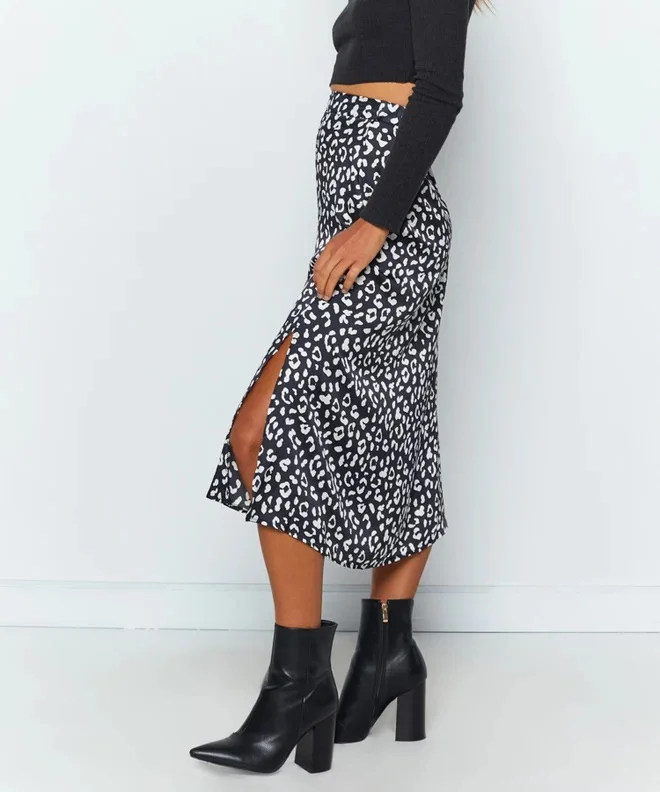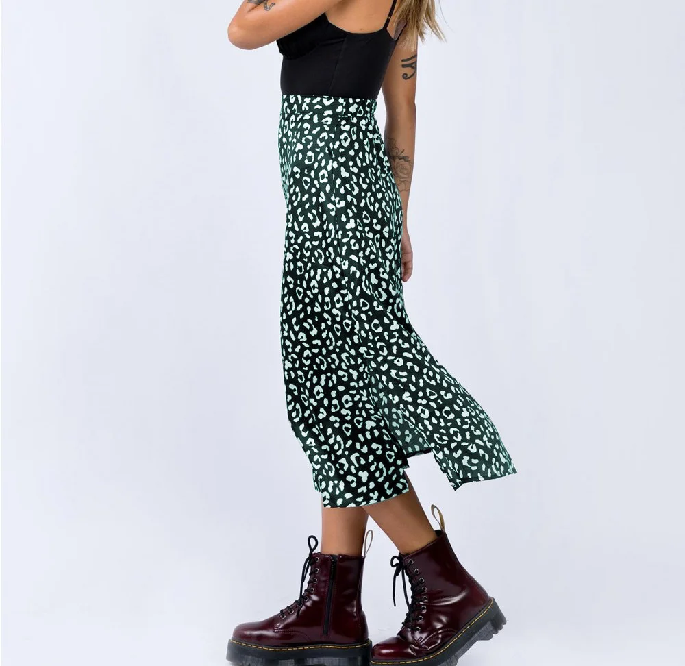 AIUJXK Новинка 2020 летние юбки с высокой талией и леопардовым принтом женские модные повседневные юбки до середины икры с разрезом сбоку Прямая поставка
