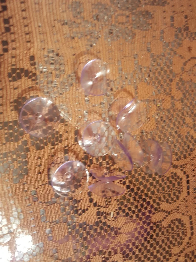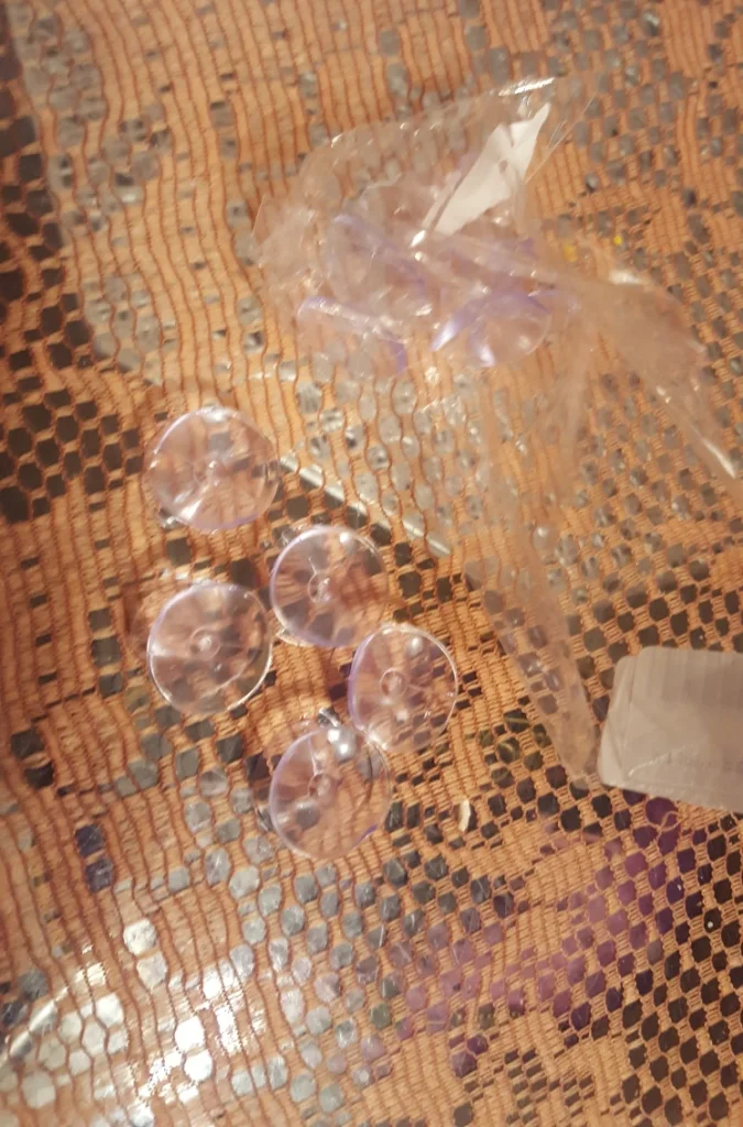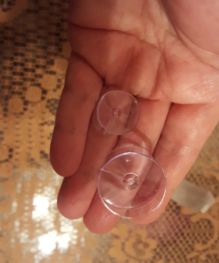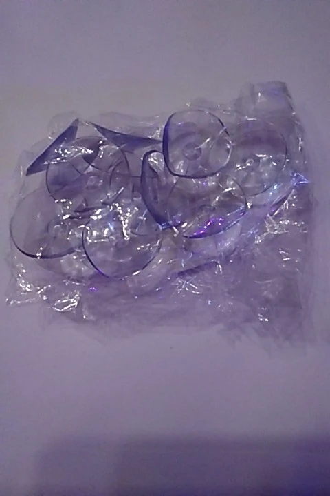 Быстрая доставка -3 недели (отслеживалась посылка вплоть до вручения). Взяла два размера - буду использовать в качестве небольших подставок для плоских подноса и блюдец (такие подарили, брать со стола их неудобно), вот только еще не решила, как прикрепить присоски - надежды, что они будут держаться самостоятельно, у меня нет. Силикон не очень плотный - маленькие присоски проседают (но я их купила 2 комплекта), большие покрепче.