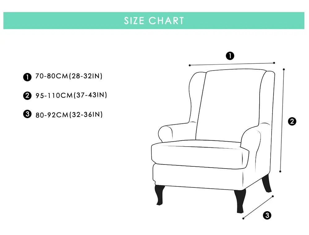 Внимательно измерьте размер своего стула. Учтите и подлокотники. Если вы не учтите подлокотники, чехол может не подойти на ваше кресло. Подходит для кресла 27,5-31,5 дюйма (70-80 см) в длину, 37,4-43,3 дюйма (95-109 см) в высоту и 31,5-36,2 (80-91 см) в ширину.