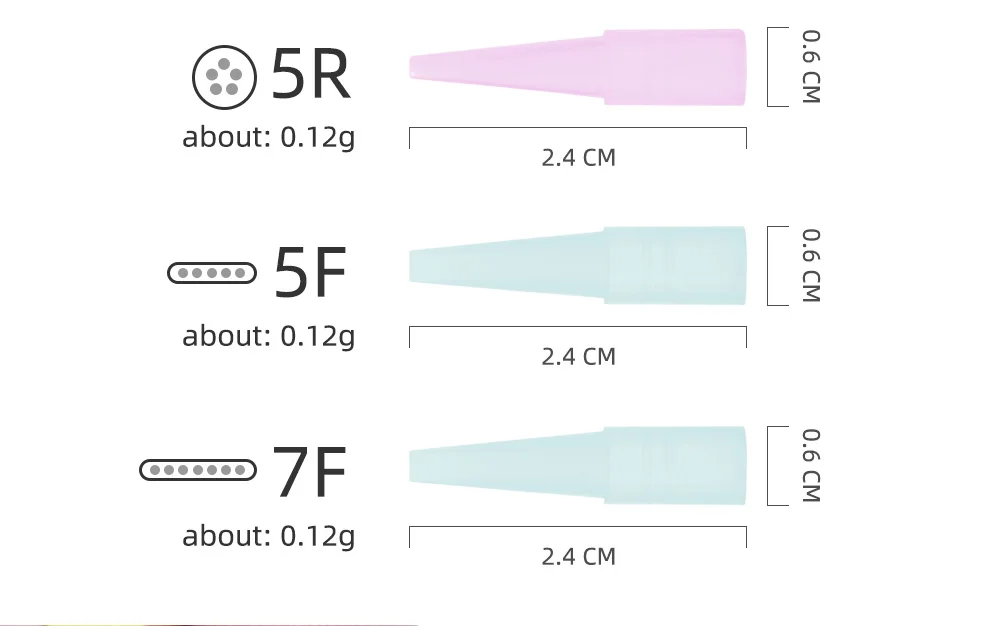 5 типов, 50 шт., одноразовые насадки для тату-игл, 1R3R5R5F7F