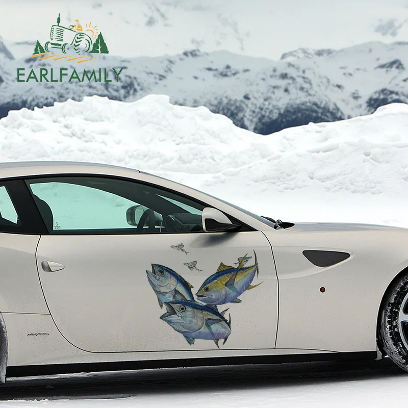 EARLFAMILY 43 см x 39,4 см автомобильные боковые наклейки сделай сам, виниловая пленка с голубым желтым плавником, тунцем, рыбой, автомобильные аксессуары