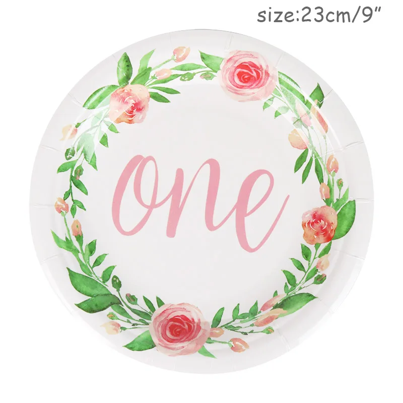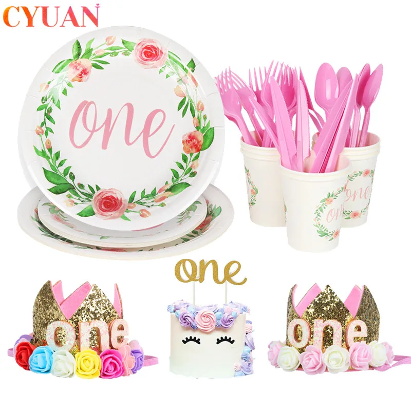 Детские бумажные стаканчики и тарелки с цветочным принтом для перво...