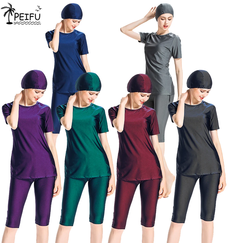 Женский Исламский купальник PEIFU с короткими рукавами, купальники ...