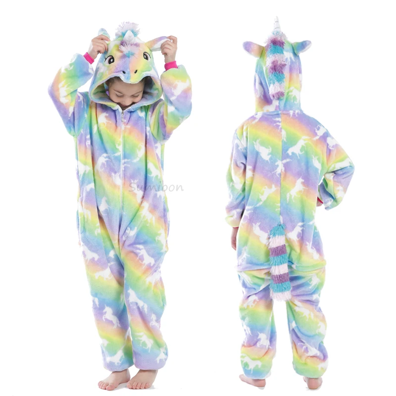 Комбинезон кигуруми детский, Фланелевая пижама с капюшоном, в виде единорога, Детская домашняя одежда, комбинезон для мальчиков и девочек с пандой, зимний