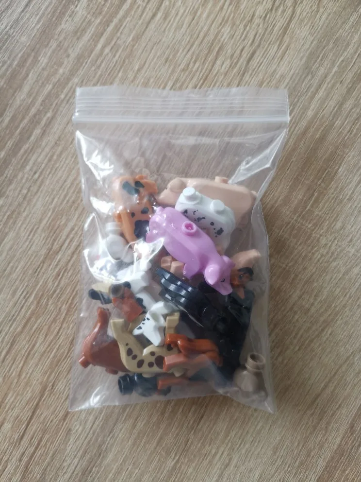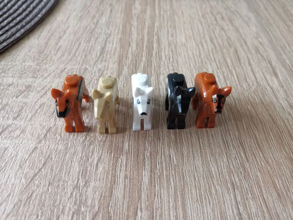 Собачки такого же размера, как собачки от оригинального LEGO, небольшое отличие в том, что у оригинала не снимается голова, а у этих снимается. Расцветки супер, дети в восторге, очень ждали эту посылку. Доставка примерно 2 недели.