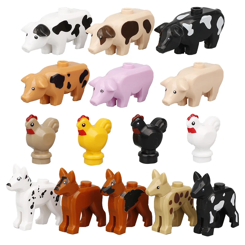 Строительные блоки MOC, ферма, животные, милые питомцы, свинки, курица, полиция, собака, город, детали для самостоятельной сборки, кирпичи, игрушки, Обучающие блоки C181