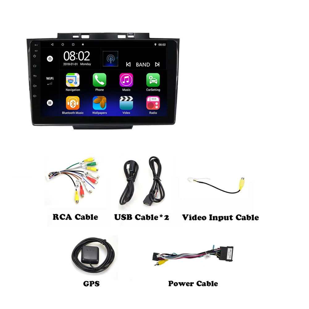 1 х Автомобильный сенсорный экран Bluetooth1 X Антенна GPS1 X вход камеры1 х RCA вход/выход1 х Оригинальный автомобильный адаптер2 X USB кабельРуководство по эксплуатации-1 шт.
