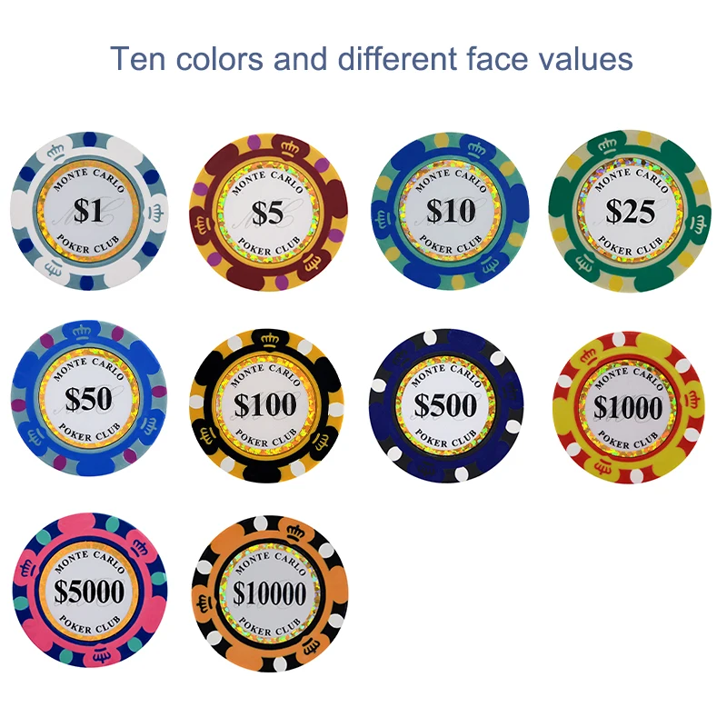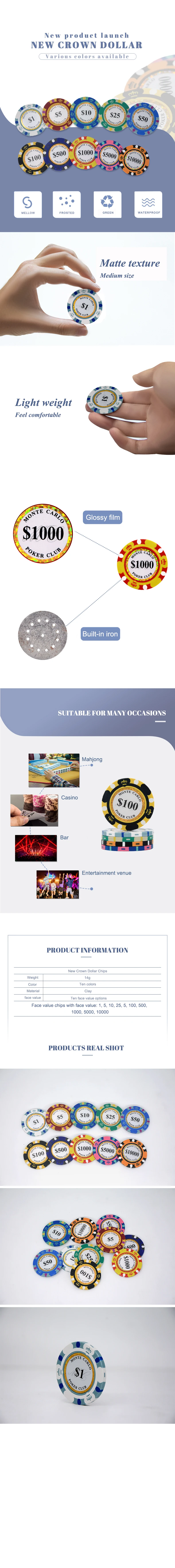 10 шт.лот покерные фишки из Золотой Глины, монеты для казино, 14 грамм, глиняные монеты, покерные фишки, развлечения, монеты Монте-доллар Карло, дропшиппинг
